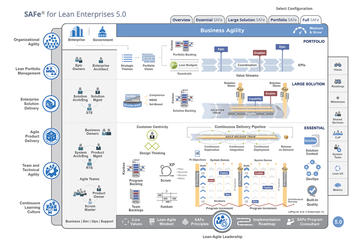 Det store SAFe billede man møder når man går ind på scaledagileframework ændrer sig en del. Det hele er blevet mere struktureret, hvor tingene tidligere var lidt smidt ud over det hele. Nu ligger roller tydeligt for sig, key competences for sig, og så videre. Alt i alt en tiltrængt udvikling.